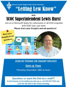Join us on Teams for Letting Lew Know on Thursday, December 18th, at noon! Superintendent Lewis Hurst will provide updates on the latest news from the Opportunity Center.
